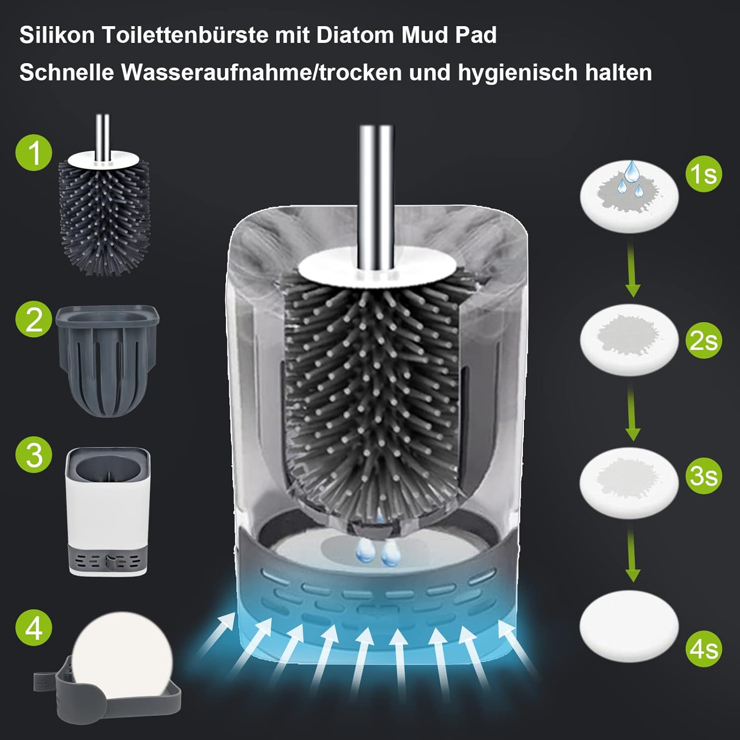 Glowbal Klobürste, Toilettenbürste Silikon mit Behälter schnell trocknendem, WC bürste für Badezimmer Gäste-WC, Wandmontage & Stehen