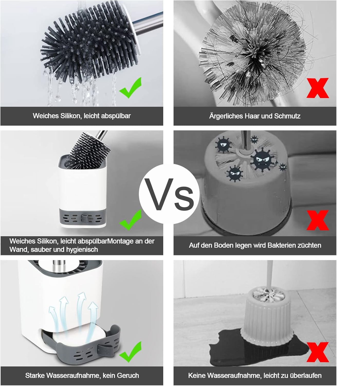 - 【Effiziente Reinigung】Unsere Silikon Toilettenbürste hat 360° dicker weicher Bürstenkopf, um hartnäckige Flecken unter dem Rand und andere schwer zu erreichende Stellen zu entferne.