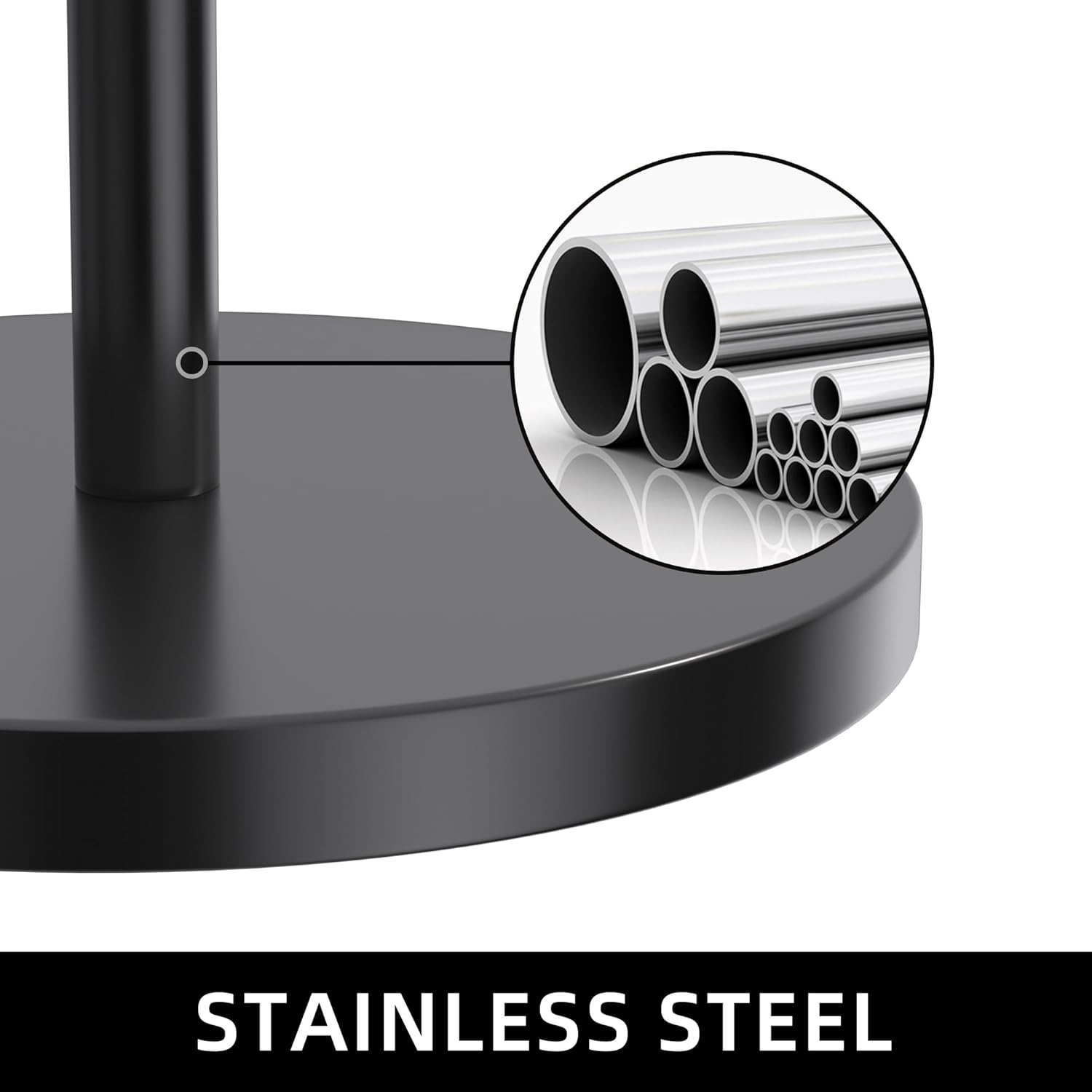 - 🧻PREMIUMMATERIAL – Dieser Toilettenpapierhalterständer besteht aus hochwertigem Edelstahl mit einer glatten, mattschwarzen Oberfläche, die robust und langlebig ist und sich leicht reinigen und pflegen lässt.